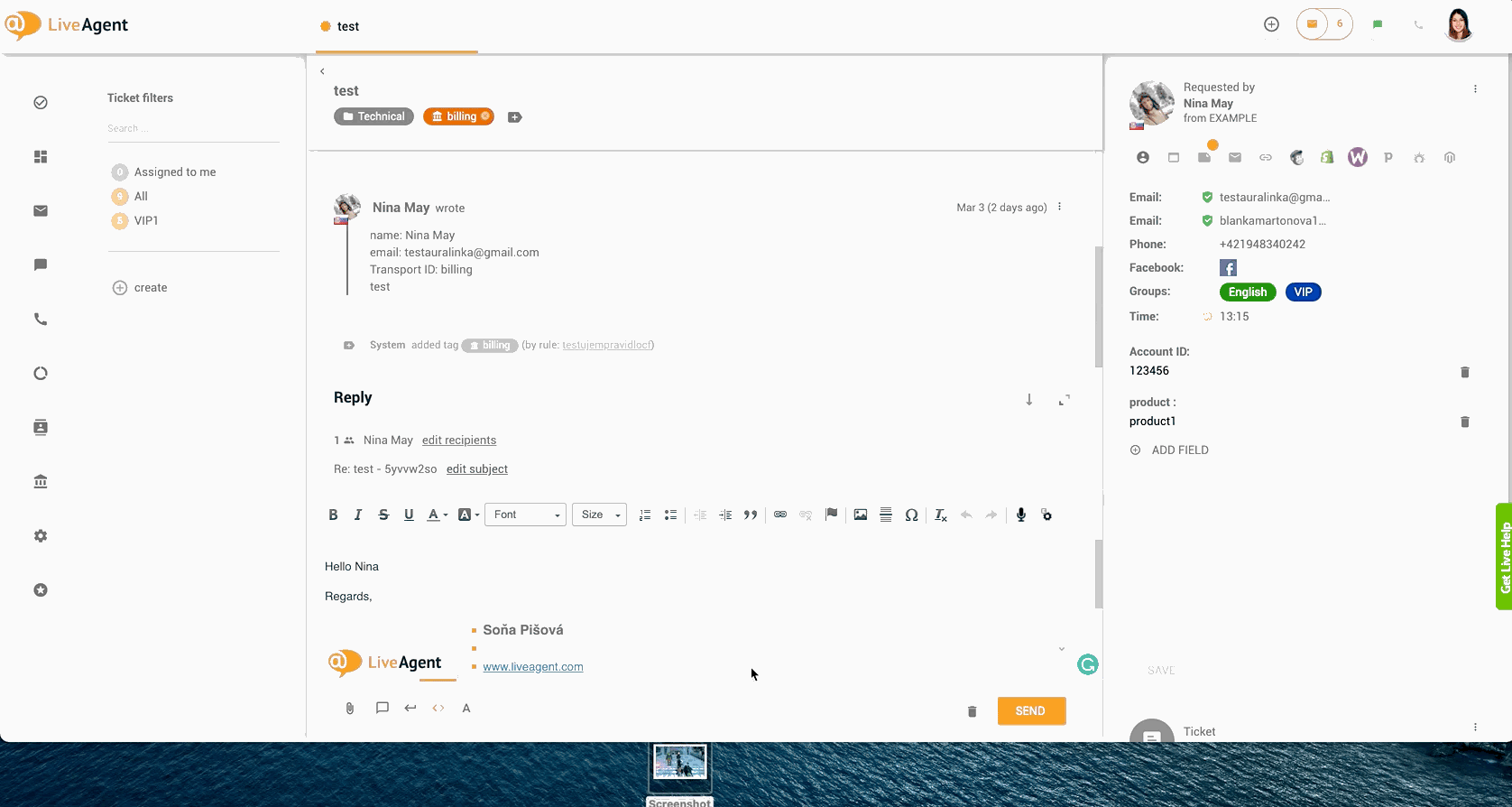 Jei norite formatuoti el. laiškus, tai gali būti gana sudėtinga, ypač jei prie tam tikrų teksto sričių ketinate pridėti paveikslėlių. Tačiau naudodamiesi „LiveAgent“ paveikslėius galite įterpti naudodami įterpimo mygtuką arba kopijavimo ir įklijavimo funkciją. Atkreipkite dėmesį, kad nėra jokių apribojimų, kokių tipų failus galima siųsti el. paštu.