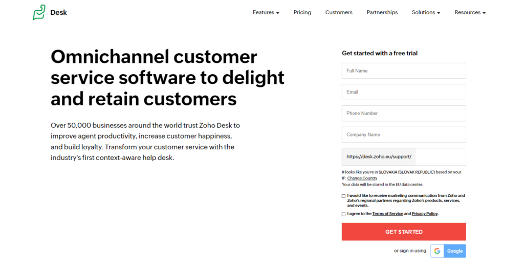 Zoho Desk padeda klientų aptarnavimo komandoms ir pardavėjams kaip klientų patirties programinė įranga. Ji taip pat siūlo užsakymų platformą, padedančią klientams nustatyti susitikimus.