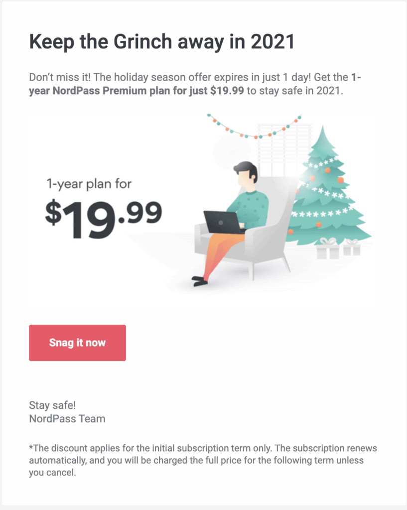It looks like you haven’t signed into your [Product] account for a while. Just a friendly heads up that [Product] accounts are automatically deactivated after [number] days of inactivity.