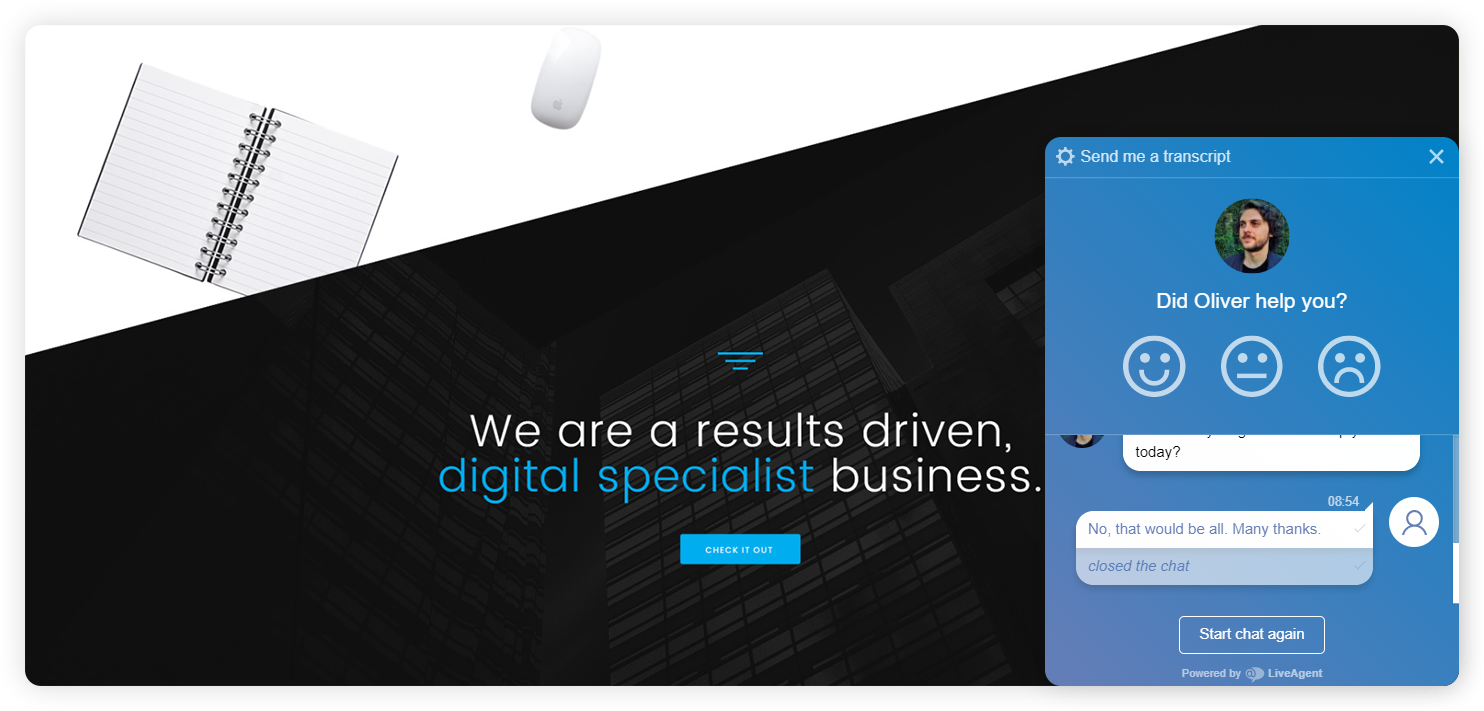 „LiveAgent“ pokalbių programinė įranga suteikia klientui asmeninę patirtį, nes kitoje pusėje esti žmogus, o ne pokalbių robotas. Paprasčiausiai nurodydami savo vardą, agentai akimirksniu sustiprina ryšį su pašnekovu, parodydami jam, kad kitoje pusėje tikras žmogus, o ne robotas.