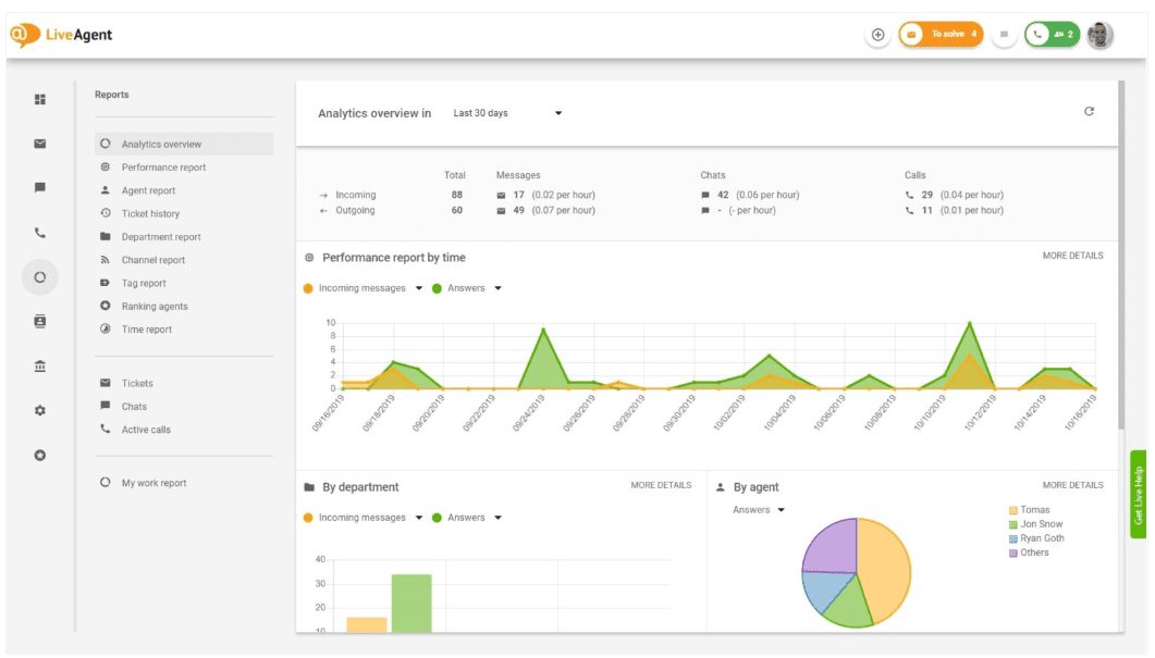 „LiveAgent“ yra visapusiška pagalbos centro programinė įranga, kuri padidins jūsų klientų aptarnavimo komandos produktyvumą, klientų pasitenkinimą ir sutaupys pinigų vienu metu. „LiveAgent“ aptarnavo daugiau nei 15 000 įmonių ir 150 mln. galutinių vartotojų visame pasaulyje. Prisijunkite prie jų ir teikite pasaulinio lygio klientų aptarnavimą. Mes tai palengviname.